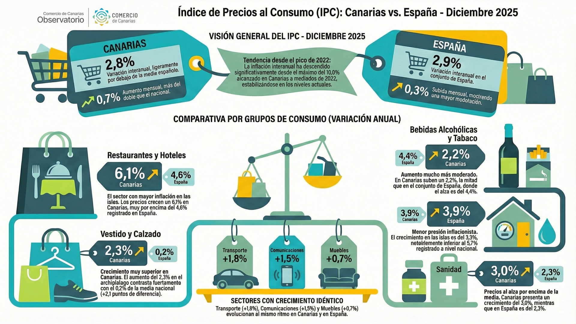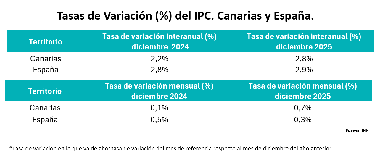 El Observatorio de Comercio de Canarias publica los resultados del Índice de Precios al Consumo (IPC) en el archipiélago correspondientes al mes de Diciembre 2025.