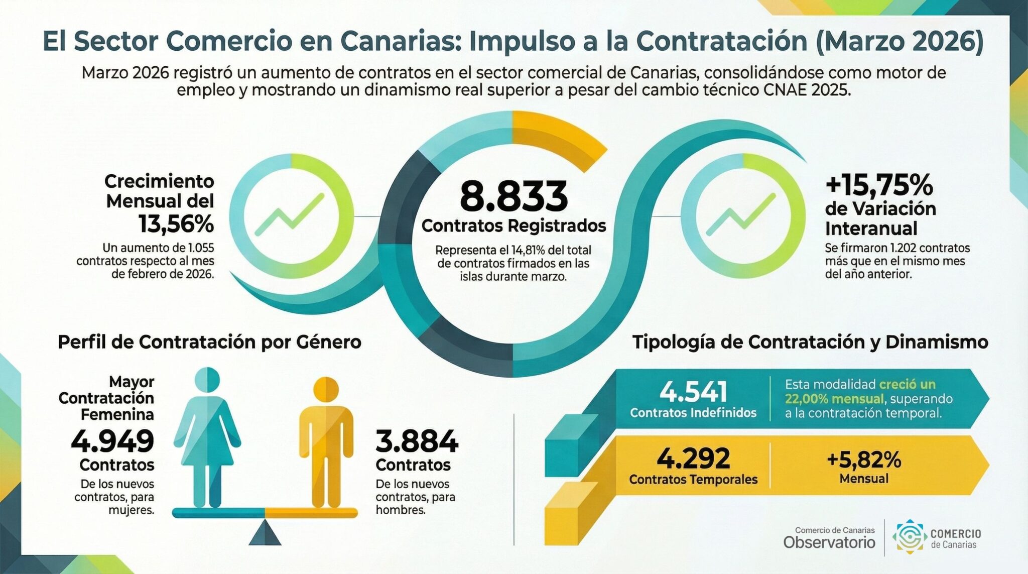 El Observatorio de Comercio de Canarias publica los resultados de los contratos registrados en el sector comercial correspondientes a marzo de 2026.