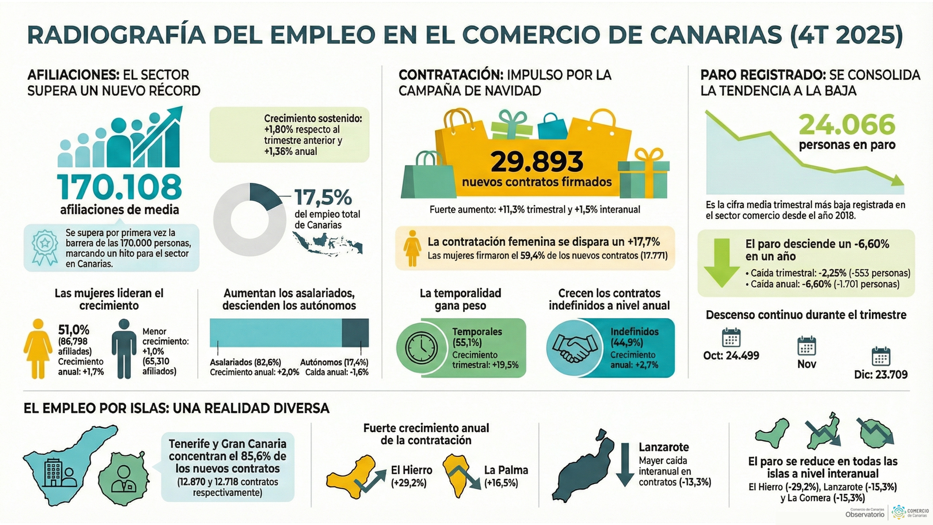 El Observatorio de Comercio de Canarias publica los resultados del análisis del mercado laboral en el sector comercial para el cuarto trimestre de 2025.
